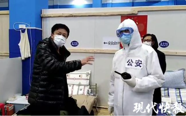 一個是執(zhí)勤民警,一個是新冠肺炎感染者,父子倆,在方艙醫(yī)院里不期而遇。2月14日,武漢江岸方艙醫(yī)院剛啟用不久,陸續(xù)收治病人,方艙醫(yī)院民警突擊隊(duì)的王桓峰正在執(zhí)勤,偶然間,一個熟悉的面孔出現(xiàn)在他的面前,“這不是父親嗎?”原來,剛剛確診不久的父親,恰巧被收治在兒子執(zhí)勤的方艙醫(yī)院。