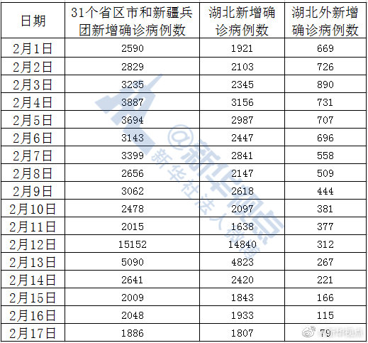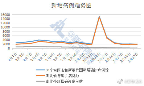 2月17日,31個?。ㄗ灾螀^(qū)、直轄市)和新疆生產(chǎn)建設(shè)兵團報告新增新冠肺炎確診病例1886例,湖北新增確診病例1807例。這就是說,除湖北外的30個省區(qū)市和新疆生產(chǎn)建設(shè)兵團昨日新增確診79例,這是自2月3日來新增病例到達高點890例以來的首次兩位數(shù)報告,也是第14連降。?