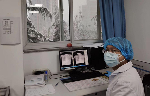 圖為程克斌醫(yī)生在查看分析病人的胸片。新華網(wǎng)發(fā)