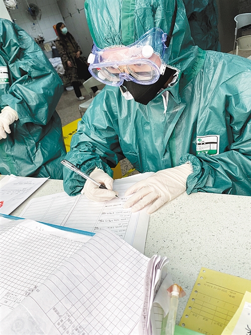 2月11日,賈娜重新穿上防護服,回到了急診科,每天在搶救室不停歇地為患者打針、補液、抽血、記錄、上呼吸機……