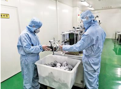8時(shí)10分,春陽燦燦,剛下夜班的趙造柱一臉倦容,他捶著腿憨厚地笑道:“這班生產(chǎn)了6000多只N95口罩,站了一宿,腿有點(diǎn)酸疼?!?/p>