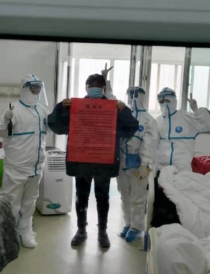 金銀潭醫(yī)院是接收重癥病人的陣地,我們也面臨著越來越多的考驗(yàn),除了日常的治療和護(hù)理外,還要幫助病人喂水、喂飯、擦身等,工作時(shí)更加小心謹(jǐn)慎。前些日子,一名85歲的患者出院了。出院前,他給醫(yī)護(hù)人員寫了封長長的感謝信,知道我們是來支援的護(hù)士后,一個(gè)勁地對我們表示感謝,還積極鼓勵(lì)其他病人??匆娀颊邆円惶焯炜祻?fù),我覺得一切都是值得的。