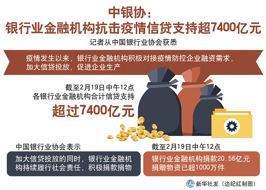 新華社北京2月20日電(記者李延霞)記者從中國(guó)銀行業(yè)協(xié)會(huì)獲悉,疫情發(fā)生以來,銀行業(yè)金融機(jī)構(gòu)積極對(duì)接疫情防控企業(yè)融資需求,加大信貸投放,促進(jìn)企業(yè)生產(chǎn)。截至2月19日中午12點(diǎn),各銀行業(yè)金融機(jī)構(gòu)合計(jì)信貸支持超過7400億元。