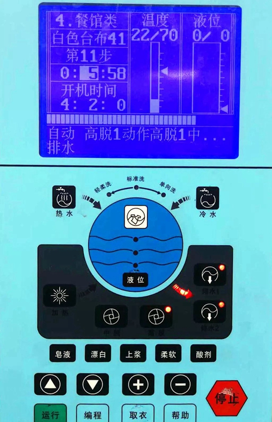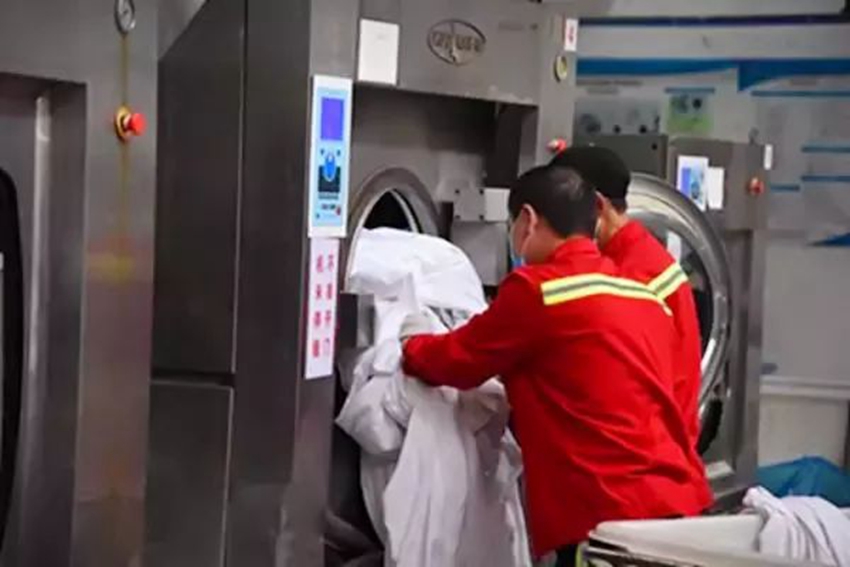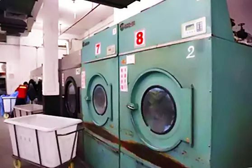 一套臥具要經(jīng)過11道洗滌消毒工序,過程中設備會自動加熱,溫度逐步加熱至80攝氏度,在這樣的恒定高溫下要足足轉洗約50分鐘。