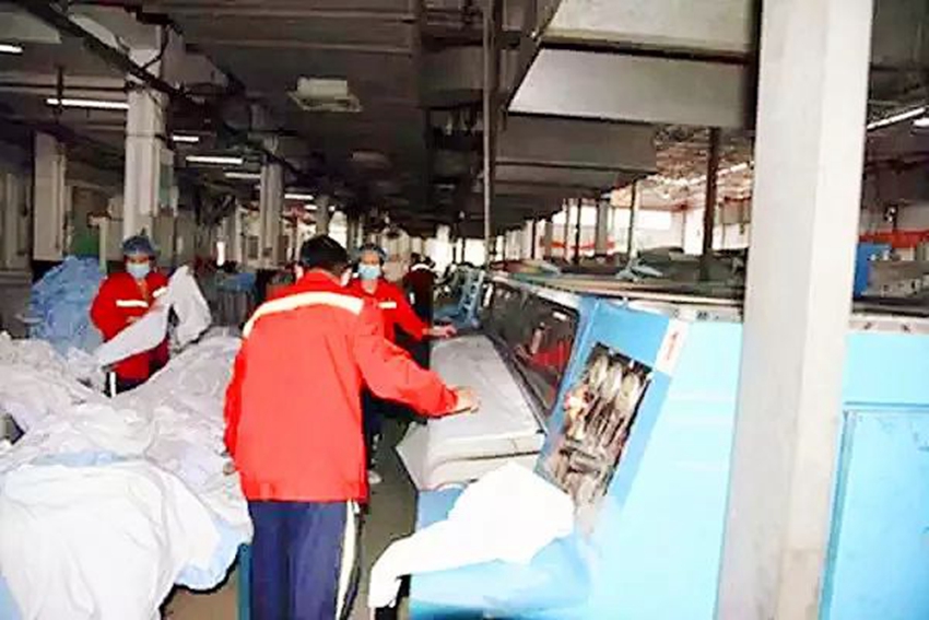 洗滌后的臥具會被放入烘干機內(nèi)烘干,然后工作人員將臥具用高溫熨燙機進行最后的處理:一方面熨燙臥具至平整,另一方面可以進一步高溫消毒。