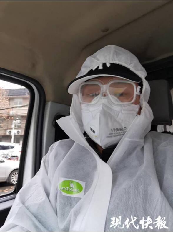 雖然讓我們盡量不要和病人接觸,但是每次接送病人的時(shí)候,看見他們大包小包的,親人也不能陪護(hù),我就非常不忍心,能幫忙就盡量幫忙。而且我想,穿著防護(hù)服,戴著手套,不會(huì)有問題的。我還準(zhǔn)備了一套“專用服裝”,就在工作期間穿,每次洗都用 84 消毒,現(xiàn)在衣服都被燒壞了,成了紅色的。