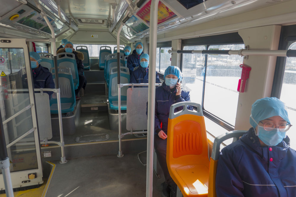 青島大學(xué)附屬醫(yī)院醫(yī)療隊(duì)醫(yī)護(hù)人員下班后乘大巴返回駐地,分散坐車(chē),減少交叉感染風(fēng)險(xiǎn)。