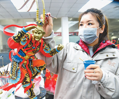 24日,浙江建德市一家文創(chuàng)公司的生產(chǎn)車間內(nèi),員工在給工藝品上色。寧文武攝(人民視覺)