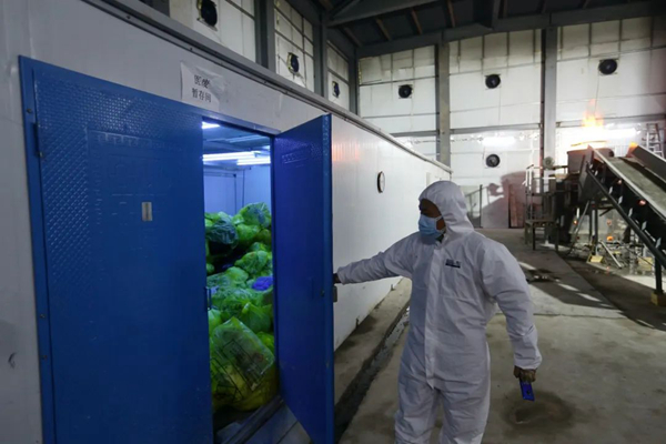 雷神山醫(yī)院醫(yī)用垃圾裂解焚燒車間的暫存?zhèn)}庫里,配有24小時紫外線照射消毒。(攝影:崔萌)