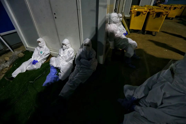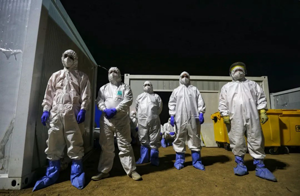 雷神山醫(yī)院負(fù)責(zé)處置清運醫(yī)療廢物的志愿者們(攝影:崔萌)