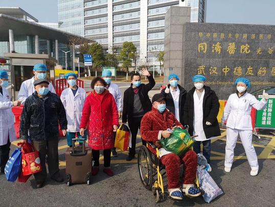 2月21日,華中科技大學(xué)同濟(jì)醫(yī)院光谷院區(qū)部分病人出院。新華網(wǎng)發(fā)