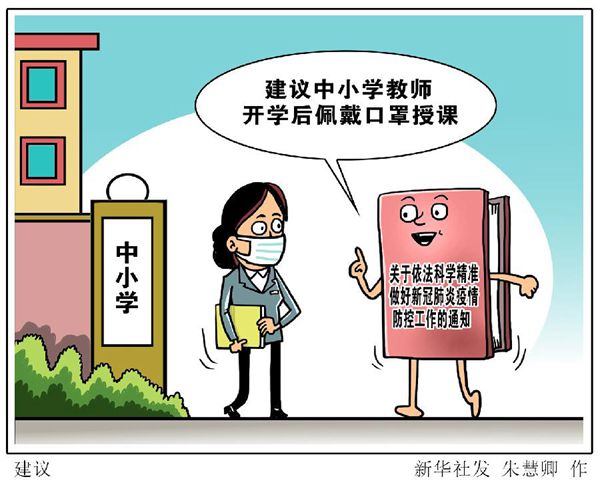 新華社北京2月26日電(記者溫競?cè)A)國務(wù)院聯(lián)防聯(lián)控機(jī)制日前印發(fā)《關(guān)于依法科學(xué)精準(zhǔn)做好新冠肺炎疫情防控工作的通知》,制定了中小學(xué)校新冠肺炎防控技術(shù)方案,開學(xué)后建議教師授課時(shí)佩戴醫(yī)用口罩。