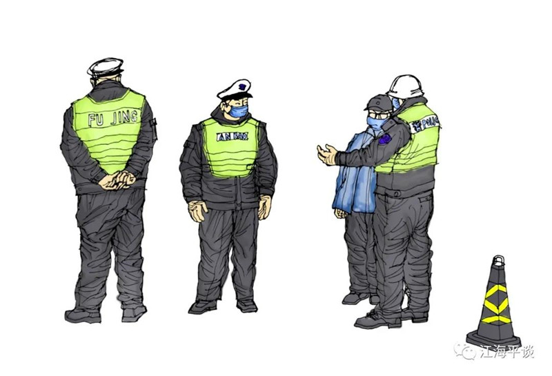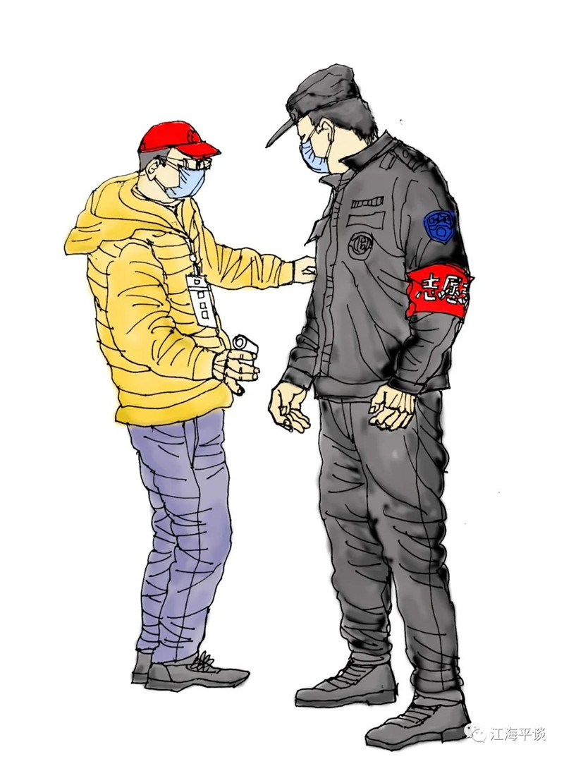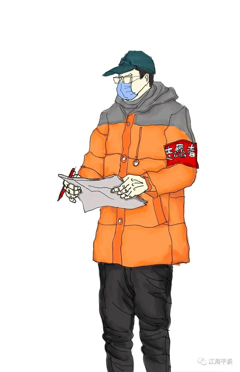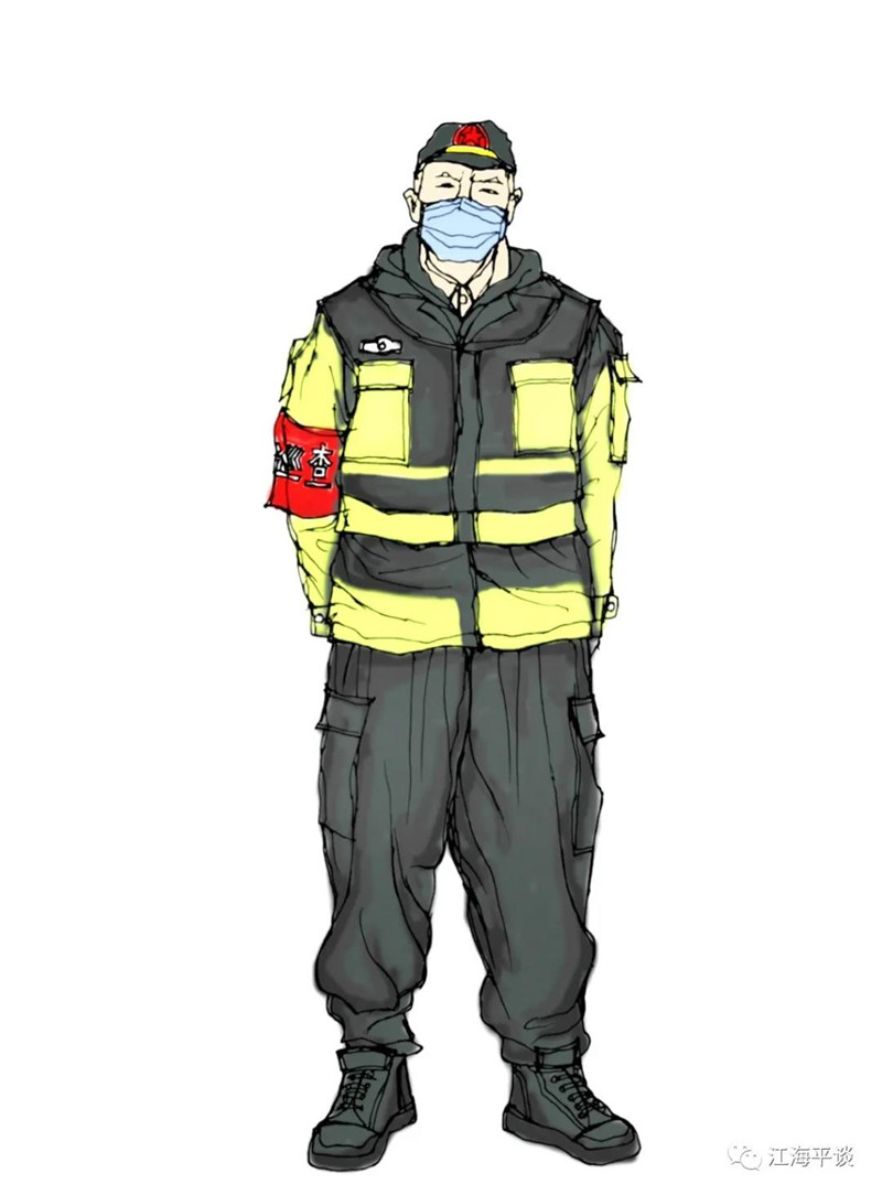 我用速寫的形式,把自己每天看到聽到的最動(dòng)人的故事或場(chǎng)景記錄下來,組成了一幅幅“防控抗疫”的群英圖譜,特別是那些奮戰(zhàn)在一線的廣大醫(yī)務(wù)工作者以及在街頭巷尾,社區(qū)民宅忘我工作、無私奉獻(xiàn)的街道干部和志愿者是我描繪的主要對(duì)象。雖然,他們都是普普通通的人,但他們都做出了不平凡的事。他們是這個(gè)時(shí)代真正的英雄,也是這個(gè)時(shí)代最可愛的人!