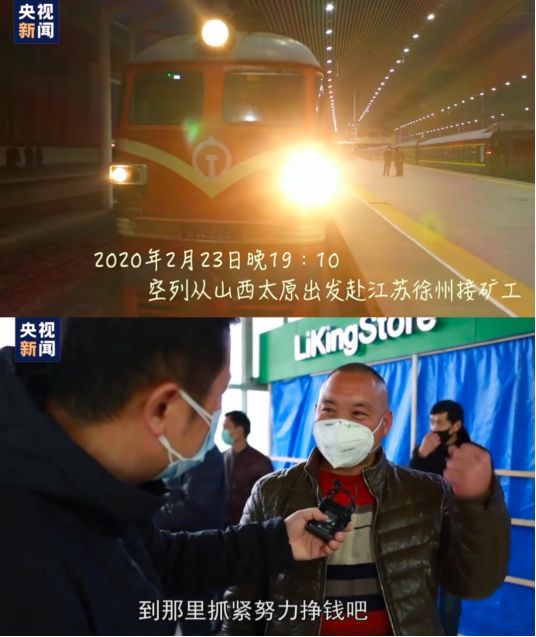 2月23日晚,山西朔州組織的復(fù)工專列,把606名煤礦工人從江蘇徐州接回朔州。這趟專列往返2000多公里,一路上有家人的牽掛,有疫情防控的壓力,更有對2020年春天滿滿的希冀和期待。