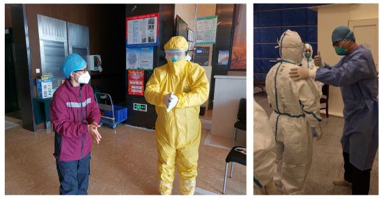 “在高強(qiáng)度的工作之后,許多一線的戰(zhàn)友們無法仔細(xì)精準(zhǔn)地按照院感要求去脫防護(hù)用品。例如,有的人忘記要先脫什么;有的人忘記脫口罩不能接觸口罩外面;有的人摘口罩、脫防護(hù)服時太快……這個時候就需要我們來提醒、幫助他們?!编崟岳蛘f,“有一次,一位醫(yī)生第一次出艙十分緊張,手一直發(fā)抖,甚至忘了怎么脫防護(hù)用品。我安慰她說,不要緊張,慢慢來,我會一步一步提醒你怎么完成。我相信第二次她就不會這樣緊張,能夠淡定出艙?!?/p>