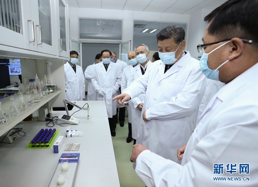 2日下午,習(xí)近平首先來(lái)到軍事醫(yī)學(xué)研究院,聽(tīng)取研究院關(guān)于新冠肺炎疫情防控科研攻關(guān)的總體情況匯報(bào),結(jié)合展板和實(shí)物了解疫苗和抗體研制、藥物篩選、病毒致病機(jī)理研究、快速檢測(cè)試劑研究和應(yīng)用等進(jìn)展情況。在儀器測(cè)試樓,習(xí)近平察看了重大疫情應(yīng)急防控藥物研究室,向堅(jiān)守崗位、奮力攻關(guān)的一線專(zhuān)家和科研人員表示親切慰問(wèn)。他強(qiáng)調(diào),提高治愈率、降低病亡率,最終戰(zhàn)勝疫情,關(guān)鍵要靠科技。習(xí)近平指出,新冠肺炎疫情發(fā)生以來(lái),軍事醫(yī)學(xué)研究院堅(jiān)決貫徹黨中央和中央軍委決策指示,聞令即動(dòng)、爭(zhēng)分奪秒,集中力量展開(kāi)應(yīng)急科研攻關(guān),取得了階段性成果,充分展現(xiàn)了人民軍隊(duì)忠于黨、忠于人民的政治本色和敢打硬仗、善打勝仗的優(yōu)良作風(fēng)。習(xí)近平希望他們?cè)俳釉賲?,充分發(fā)揮突擊隊(duì)和主力軍作用,盡快研制出安全有效的疫苗、藥物、檢測(cè)試劑,全力滿足抗擊疫情需要。要堅(jiān)持在疫情可溯、可診、可防、可治、可控方面合力攻關(guān),通過(guò)打這場(chǎng)硬仗,掌握更多具有自主知識(shí)產(chǎn)權(quán)的核心科技,拿出更多硬核產(chǎn)品,為維護(hù)人民生命安全和身體健康、維護(hù)國(guó)家戰(zhàn)略安全作出更大貢獻(xiàn)。