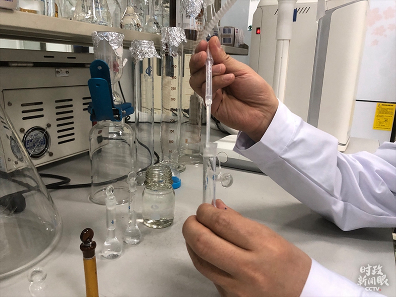 這是實驗過程中的定容操作。(總臺央視記者彭漢明拍攝)