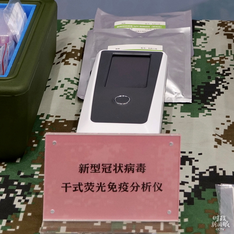 干式熒光免疫分析儀是配合上圖中抗體檢測試劑盒使用的。(總臺央視記者彭漢明拍攝)