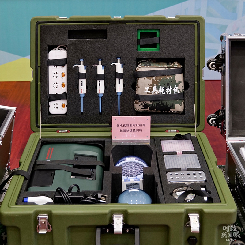 集成化新型冠狀病毒核酸快速檢測箱,配備了開展核酸檢測所需要的儀器、試劑和耗材,便攜性強,靈活機動。(總臺央視記者李錚拍攝)