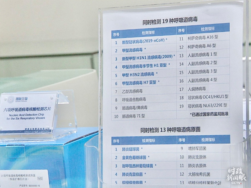 圖中藍色序號前6種呼吸道病毒,能夠被全新微流控芯片系統(tǒng)一次性檢測出來。(總臺央視記者韓銳拍攝)