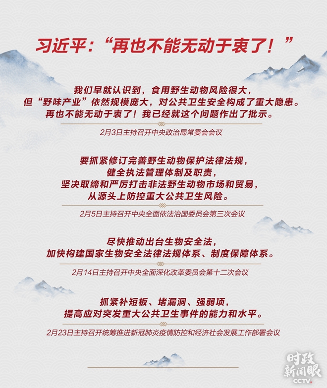 疫情發(fā)生以來,習近平不止一次談到生物安全的問題。2月14日,他在主持召開中央全面深化改革委員會第十二次會議時說,引發(fā)這次疫情的病毒,包括此前的非典、高致病性禽流感等疫情的病毒,多數(shù)病原體來自野生動物或與之有關,“必須從保護人民健康、保障國家安全、維護國家長治久安的高度,把生物安全納入國家安全體系?!?/p>