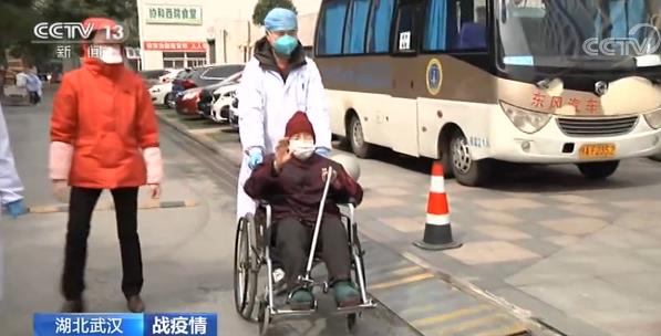 97歲高齡的新冠肺炎患者付桂英老人,幾天前在醫(yī)護(hù)人員的陪同下走出武漢協(xié)和醫(yī)院。