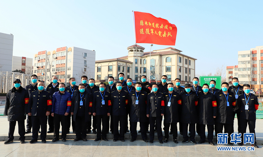 1月31日,青島西海岸新區(qū)抗擊疫情退役軍人突擊隊(duì)在隱珠文化廣場(chǎng)進(jìn)行誓師動(dòng)員。 新華社發(fā)(于長(zhǎng)波 攝)