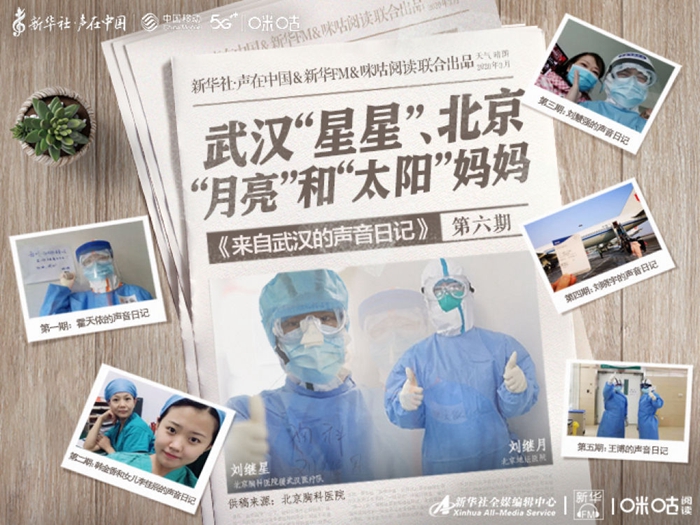 點擊收聽來自武漢的聲音日記第六期。今天講述這樣的一家人。哥哥叫劉繼星,是北京胸科醫(yī)院援武漢醫(yī)療隊成員,妹妹叫劉繼月,奮戰(zhàn)在北京地壇醫(yī)院ICU病房。而他們的媽媽也曾是醫(yī)務(wù)人員,退休前就職于北京地壇醫(yī)院順義院區(qū),參加過抗擊非典疫情。一起來聽他們的故事。