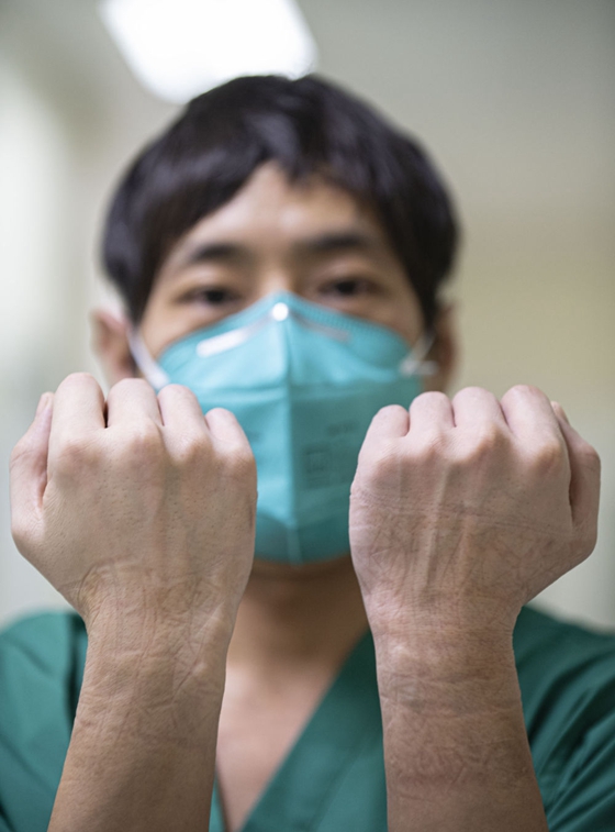 圖為北京胸科醫(yī)院支援武漢醫(yī)療隊劉繼星護士。