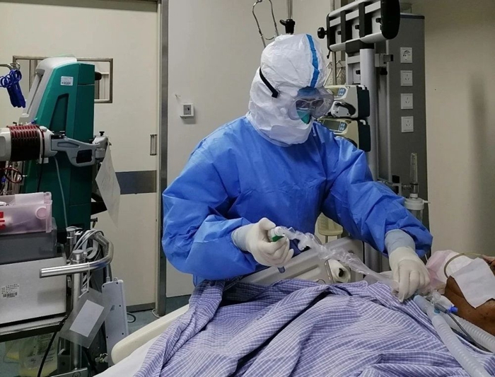 圖為北京地壇醫(yī)院ICU病房的劉繼月在工作中。