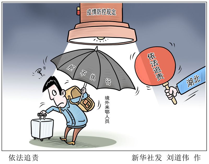 新華社武漢3月18日電(記者梁建強(qiáng)、王賢)為有效應(yīng)對(duì)境外新冠肺炎疫情輸入風(fēng)險(xiǎn),切實(shí)保障公眾生命安全和身體健康,根據(jù)國(guó)家有關(guān)法律法規(guī),湖北省新冠肺炎疫情防控指揮部近日就進(jìn)一步做好境外來(lái)鄂人員新冠肺炎疫情防控工作發(fā)布通告,明確表示,對(duì)拒不執(zhí)行疫情防控規(guī)定等的境外來(lái)鄂人員,將依法追責(zé)。