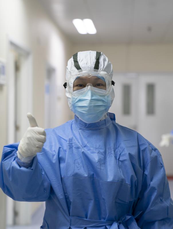 來到武漢已經(jīng)一個(gè)月了,周華坦言自己很想家。老父親因病排尿困難,長(zhǎng)期插著導(dǎo)尿管,平日里都是周華親自給父親更換。如今,照顧年邁的父親和兒子的重任都落在愛人的身上了。同學(xué)、同事聽說她去醫(yī)療隊(duì),紛紛打電話、發(fā)微信告訴她“家里有事找我吧”。和家里人視頻,老父親耳背常聽不清她講話,她就沖著屏幕笑,給老父親豎大拇指,讓他知道自己很好,讓他放心?!拔艺驹诰戎我痪€,是作為一名重癥醫(yī)學(xué)人的責(zé)任與使命,家人的支持讓我放下包袱、蹈險(xiǎn)逆行,后方的支援讓我堅(jiān)定信心、竭力抗疫。疫情不退,我們不撤!”
