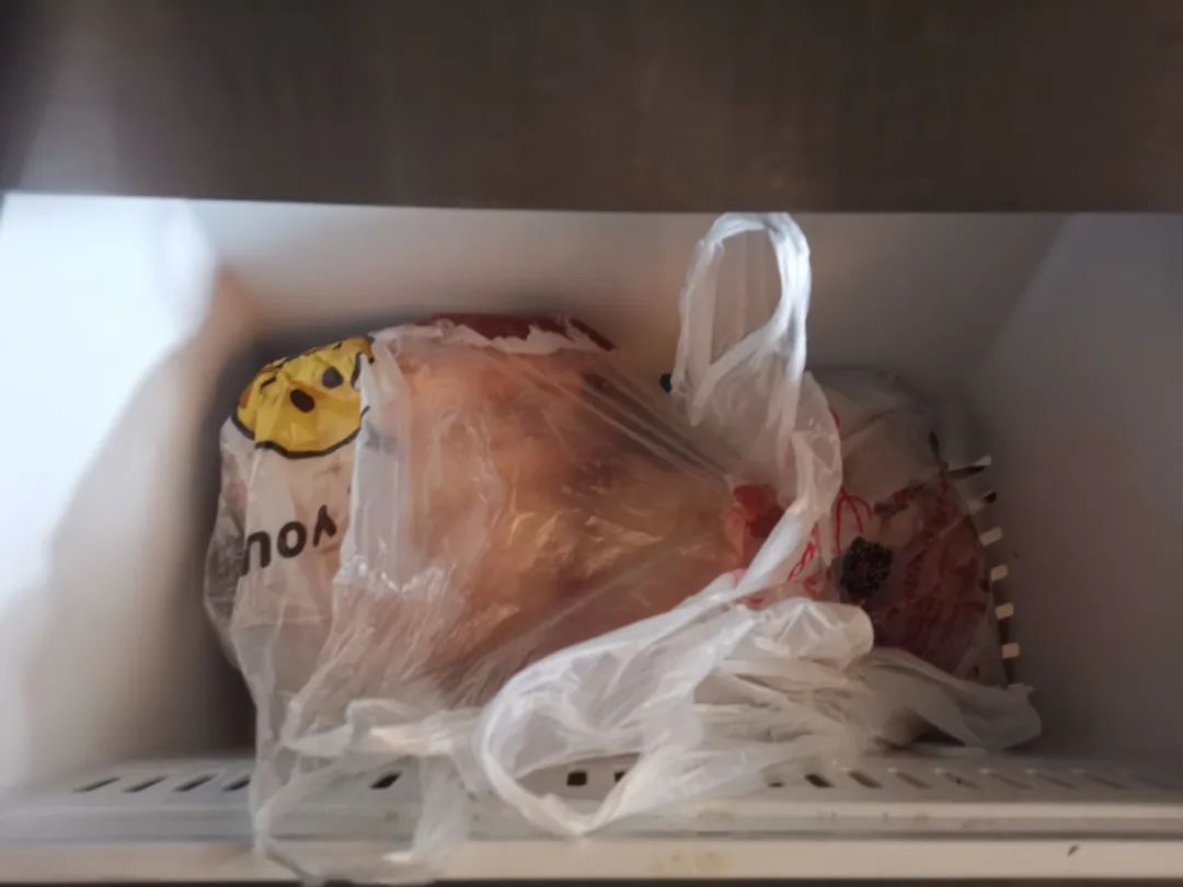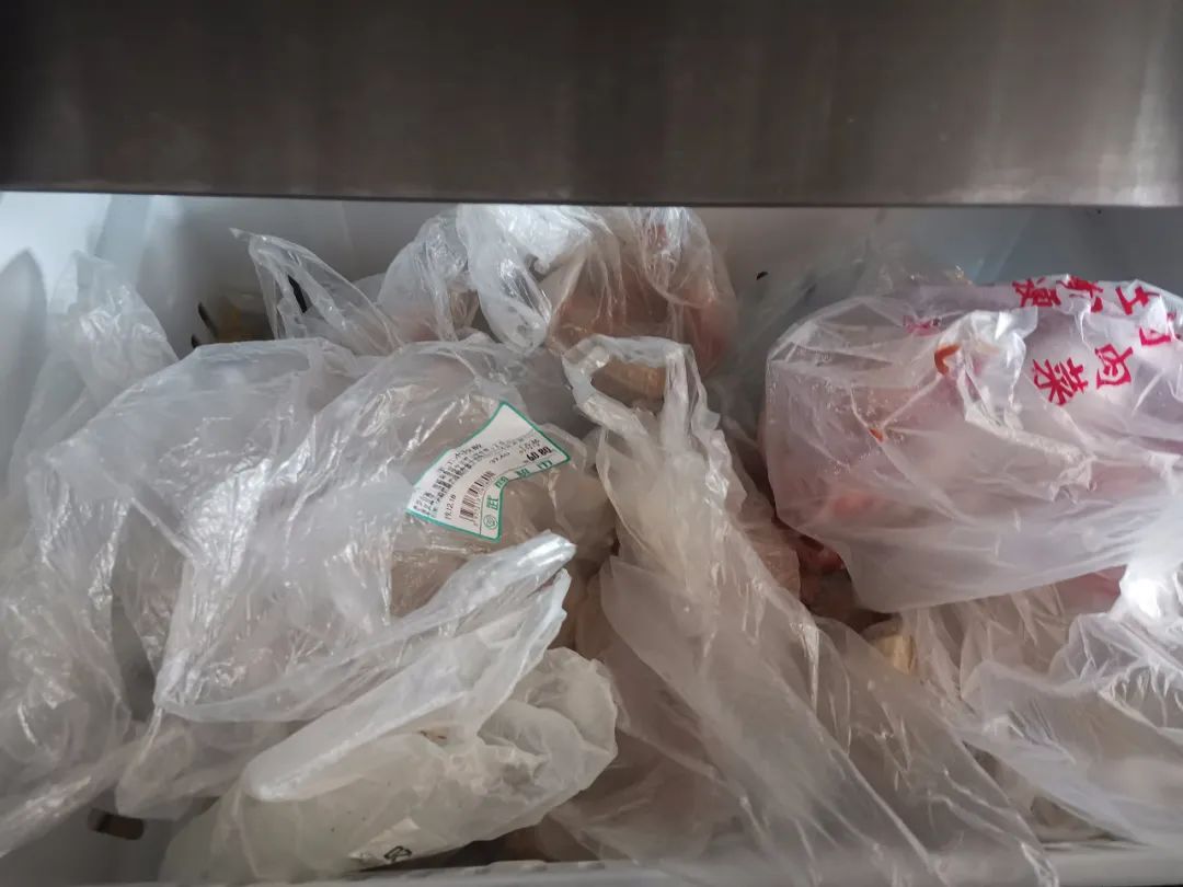 獨居老人任德康的冰箱里滿滿的肉和菜