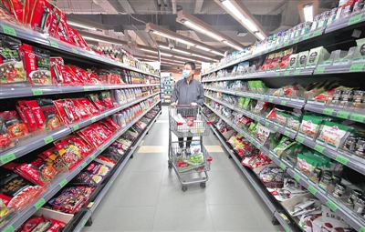 3月22日,武漢國(guó)際廣場(chǎng)武商超級(jí)生活館內(nèi)一位顧客在購(gòu)買生活用品。光明日?qǐng)?bào)武漢一線報(bào)道組記者 季春紅攝/光明圖片