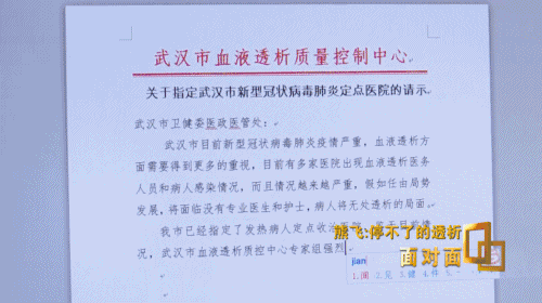 武漢市血液透析質(zhì)量控制中心主任 熊飛:這些病人訴求很簡單,能有地方透析。但隨著疫情發(fā)展,對我們醫(yī)生的壓力和考驗(yàn)越來越大。讓你在非感染區(qū)透析會(huì)導(dǎo)致其他感染,這就違反了我的底線原則。不讓你透析,一個(gè)活生生的生命,所以我們當(dāng)時(shí)壓力很大。我就把病人的數(shù)據(jù)提交給上級部門,告訴他有多少病人如果不透析,超過多長時(shí)間可能會(huì)面臨著死亡,領(lǐng)導(dǎo)也重視這個(gè)問題。