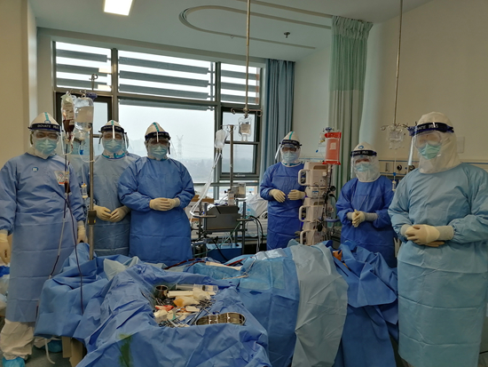 2月1日,詹慶元和呼吸與危重癥醫(yī)學(xué)科及其相關(guān)科室的醫(yī)生、呼吸治療師、護(hù)士等一支完整的團隊來到武漢。隨后,中日醫(yī)院的大量醫(yī)用設(shè)備也馳援武漢,其中包括3臺ECMO(體外膜肺氧合)等一批重要的監(jiān)測和呼吸支持設(shè)備,總價值約1500萬元。詹慶元的同事們開玩笑說:“把重型武器都搬過來了?!?/p>