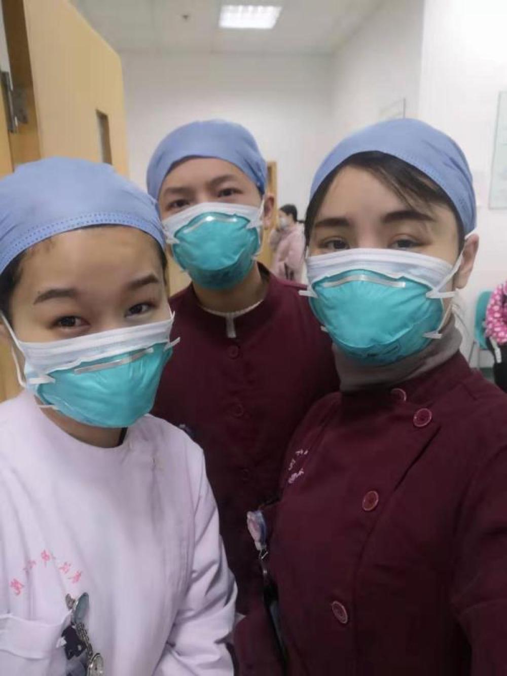 圖為李婷與醫(yī)護人員在一起。
