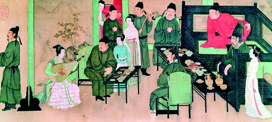 宋代,合餐進(jìn)一步定型,這與市民經(jīng)濟(jì)的發(fā)達(dá)不無(wú)關(guān)系。兩宋的都城,飲食行當(dāng)極其豐富,菜品繁密、品相細(xì)膩。各品類的酒樓、食肆也是不可勝數(shù),常常是食客滿盈。