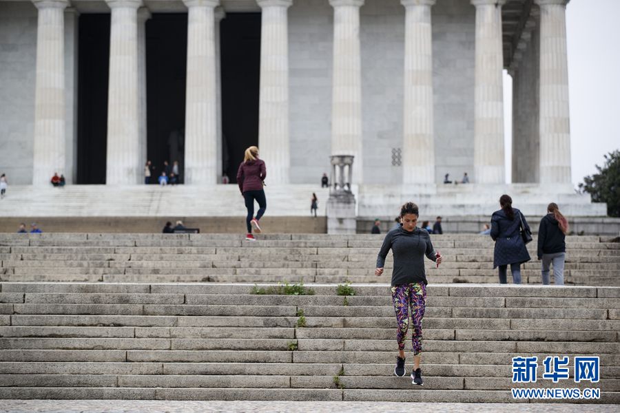 3月28日,在美國首都華盛頓,人們在林肯紀(jì)念堂附近參觀游覽。 新華社發(fā)(沈霆攝)