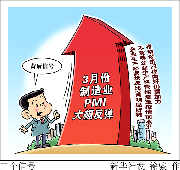 新華社北京3月31日電 題:3月份制造業(yè)PMI大幅反彈背后的三個(gè)信號