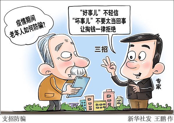 中國老齡科學研究中心副主任黨俊武認為,不法分子利用老年人害怕感染的焦慮情緒以及對病毒相關信息的不了解,其詐騙技術根本上并沒有更新。他提醒老年人及其家人牢記三句話:“好事兒”不輕信;“壞事兒”不要太當回事;讓掏錢一律拒絕。