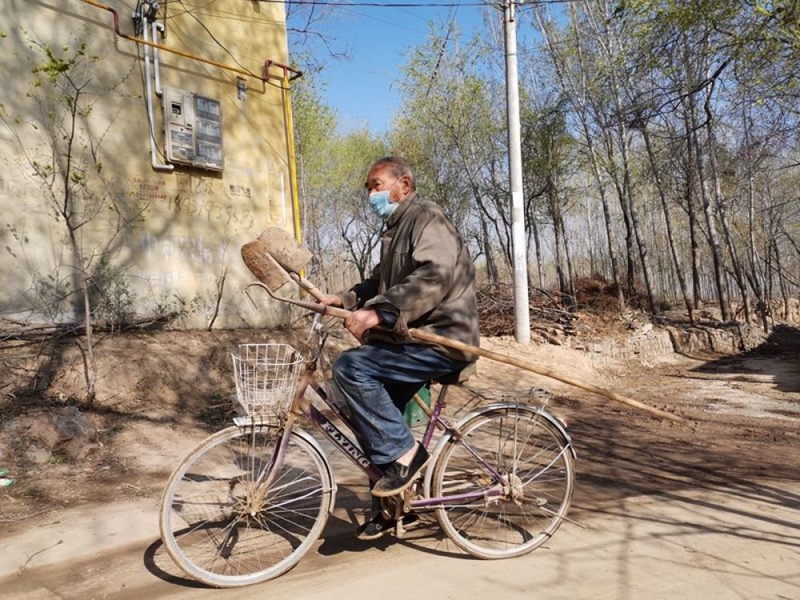 清明前夕,苗明文騎著自行車前往“八路墳”。新華社記者 杜一方 攝