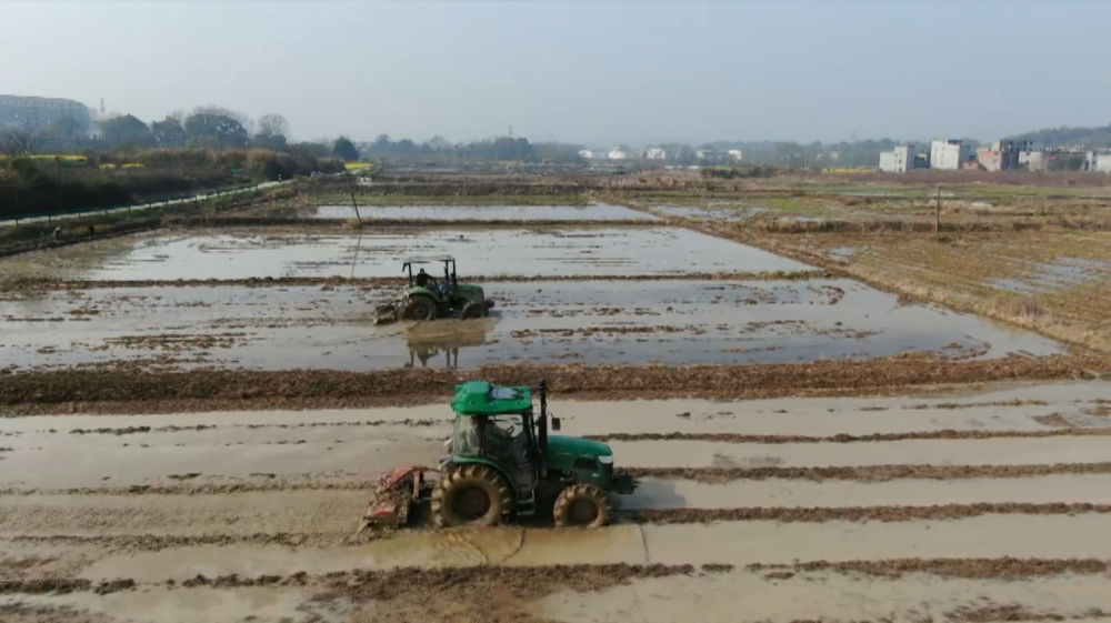 在江西省九江市柴桑區(qū)獅子街道龍崗村,種糧大戶閆正東正在進(jìn)行早稻田翻耕。(受訪者供圖)