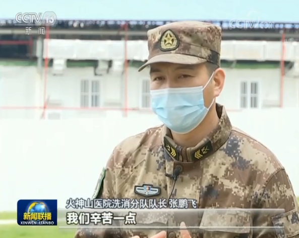 火神山醫(yī)院洗消分隊隊長 張鵬飛:我們要保證醫(yī)務(wù)人員安全,我們要保證病區(qū)安全。我們認真一點,我們負責一點,我們辛苦一點,他們就會少一絲隱患。