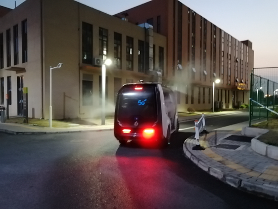 據(jù)悉,以Sharing-VAN無(wú)人駕駛觀光車(chē)為基礎(chǔ)平臺(tái),臨時(shí)抗疫服務(wù)小組對(duì)車(chē)輛進(jìn)行了自動(dòng)駕駛、5G云控等方面的優(yōu)化改裝,同時(shí)加裝16L大容量全自動(dòng)消毒噴霧器,以實(shí)現(xiàn)觀察區(qū)內(nèi)高危道路的全程無(wú)人駕駛消毒作業(yè)。