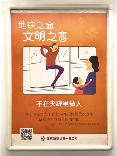 北京地鐵車廂內(nèi)的文明宣傳廣告。王晶玥攝