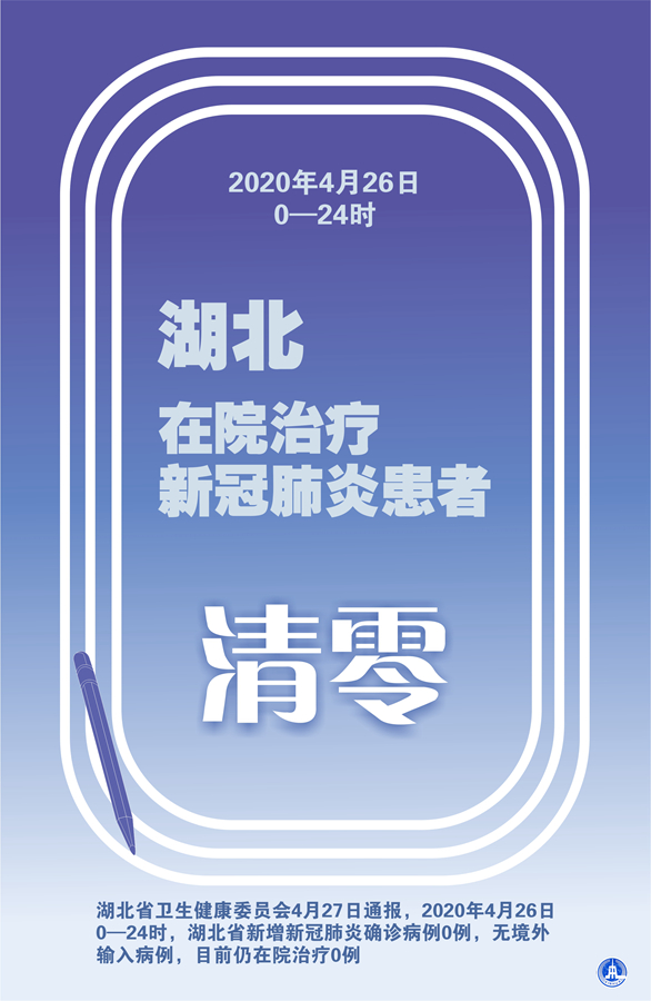 新華社武漢4月27日電(記者廖君、馮國(guó)棟)據(jù)湖北省衛(wèi)生健康委員會(huì)27日通報(bào),2020年4月26日0—24時(shí),湖北省新增新冠肺炎確診病例0例,無境外輸入病例。