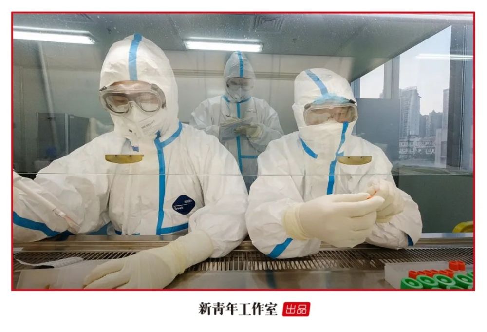樣本管上的受檢者姓名、編號和實驗室檢測號,要反復核對三次以上,確保正確無誤。清點核對非常耗時,但是不能有一點馬虎。核酸提取需要大概19分鐘,核酸擴增大約需要一個半小時。從樣本清點到檢測報告,全程最快要3個多小時。我們進了實驗室就不能吃東西、喝水,更不能上廁所,一待就是四個小時。