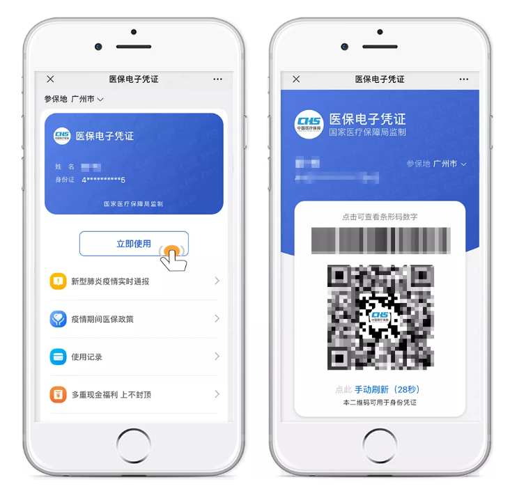 在你需要掛號(hào)、支付醫(yī)藥費(fèi)、入院登記、出院結(jié)算、藥店買藥等時(shí)候,點(diǎn)擊醫(yī)保電子憑證下方的“立即使用”,將出現(xiàn)的條形碼和二維碼向醫(yī)院或藥店出示,即可“無(wú)接觸”完成驗(yàn)證支付。