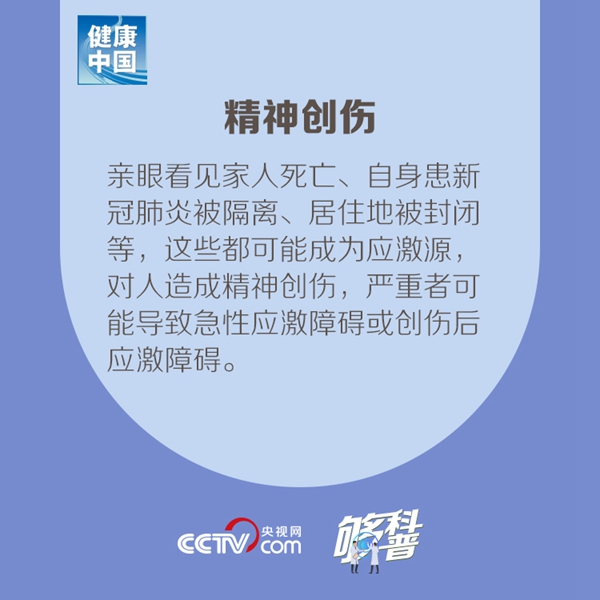 新冠肺炎疫情影響范圍之廣、持續(xù)時間之長、程度之重,身處其中的每個人都有切身感受。通過積極的應對和干預措施,大家能夠逐漸恢復正常生活、學習和工作。但在疫情結束后,可能會有一部分人出現各種各樣的心理問題或精神疾病。疫情結束后最需要警惕的心理問題和精神疾病有哪些?該如何應對?(資料來源:《新型冠狀病毒肺炎心理健康指導手冊》)